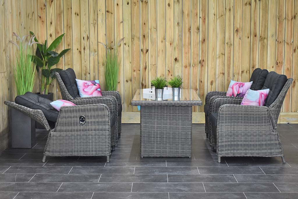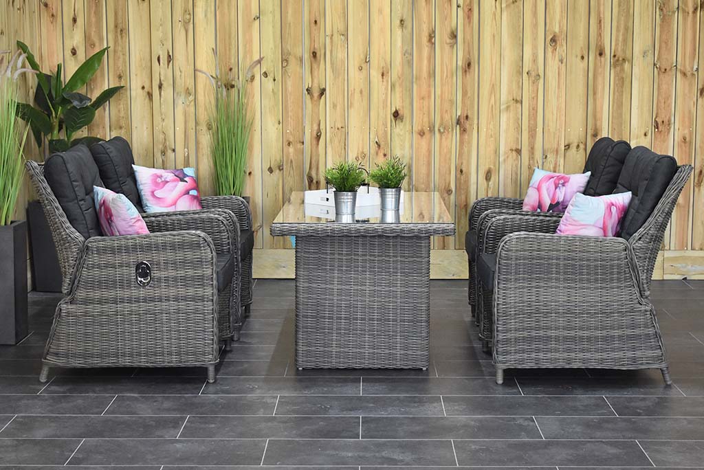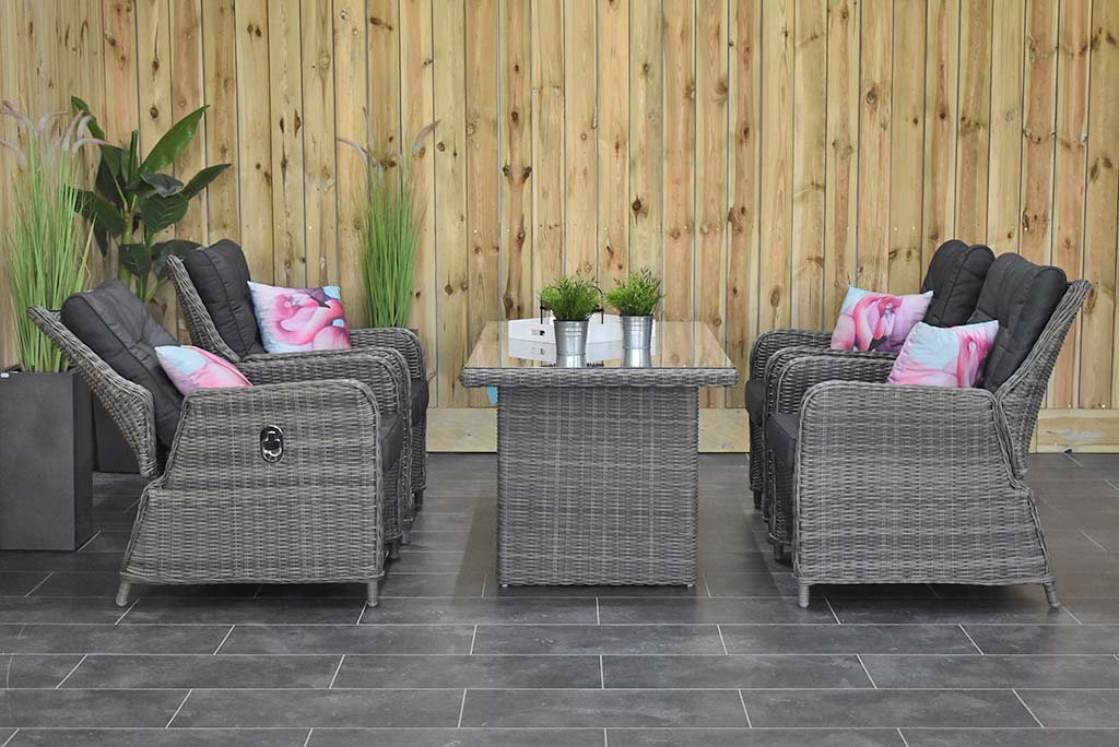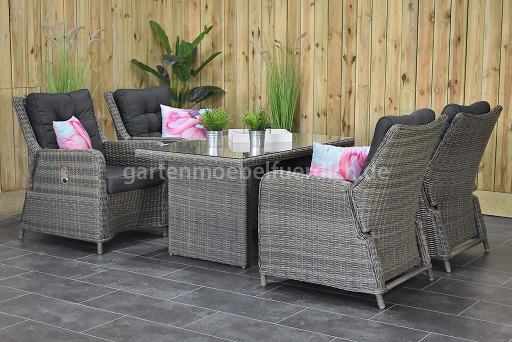 Gartenmöbel Cordoba verstellbares Dining Lounge Set, 4 Sessel mit Esstisch