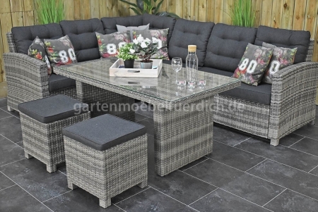 Gartenmöbel Frontera Dining Lounge mit Esstisch und Hocker