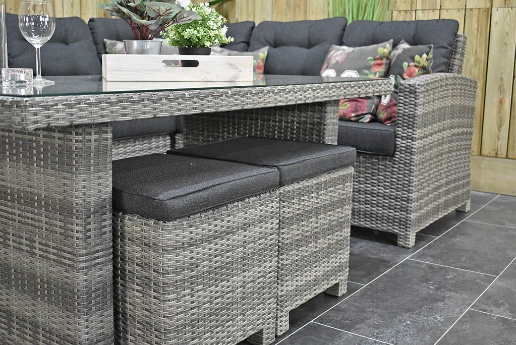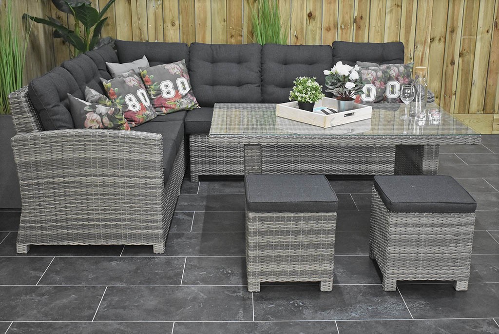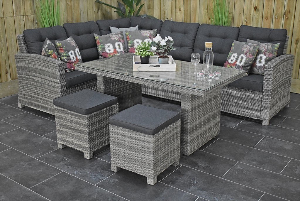 Gartenmöbel Frontera Dining Lounge mit Esstisch und Hocker