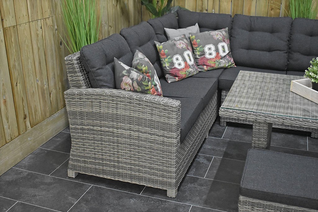 Maße: Garten-Ecksofa 195 x 255 x 80 cm (L x B x T)