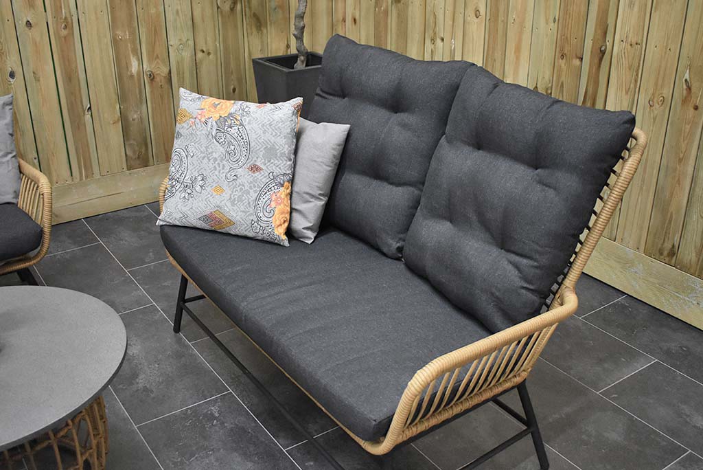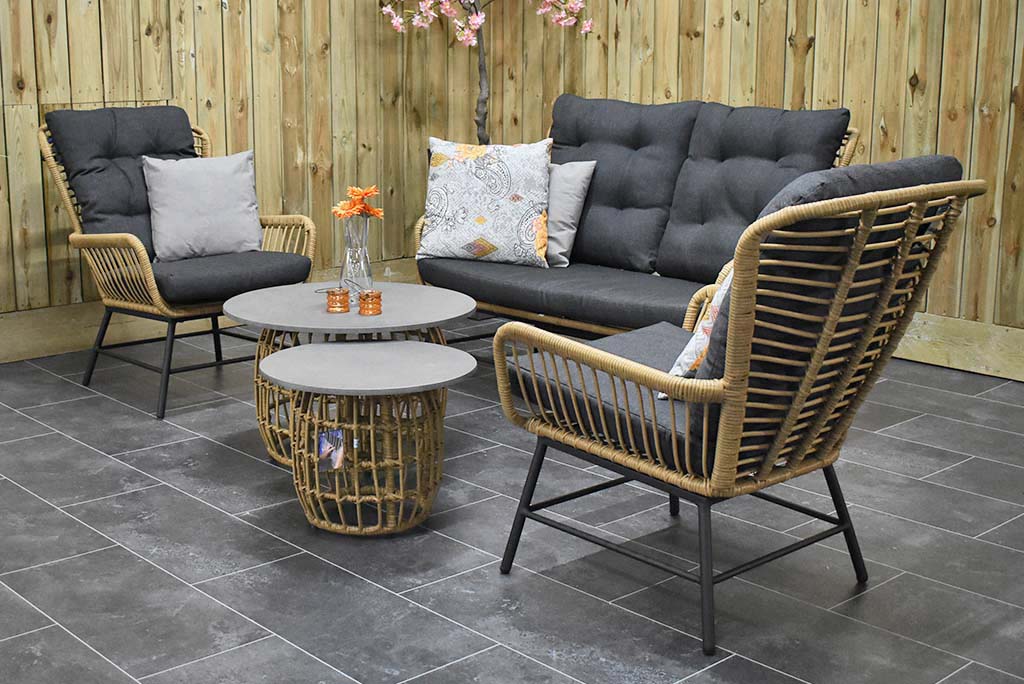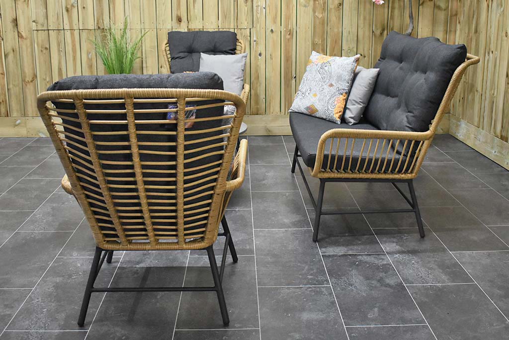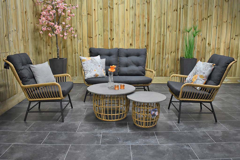 Gartenmöbel Rothwell Lounge 2er mit 2 Lounge Sessel, und 2 Lounge Tisch mit Polystone – Tischplatte