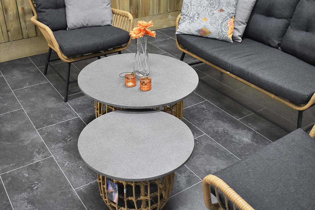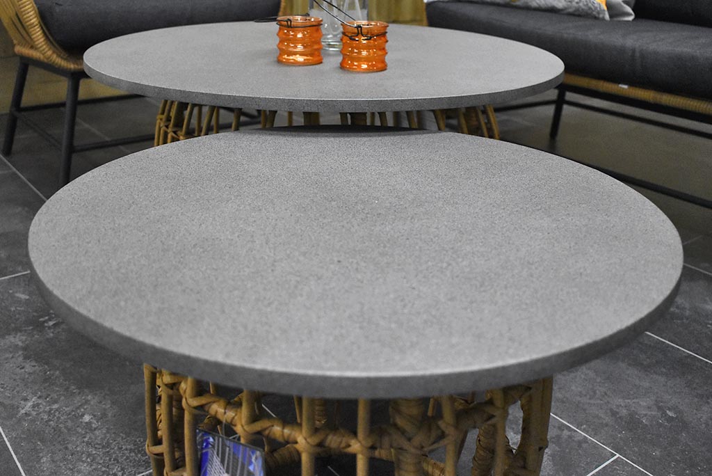 2 x Lounge Tisch mit Polystone – Tischplatte 55 und 70 cm rund
