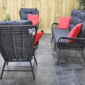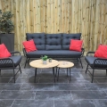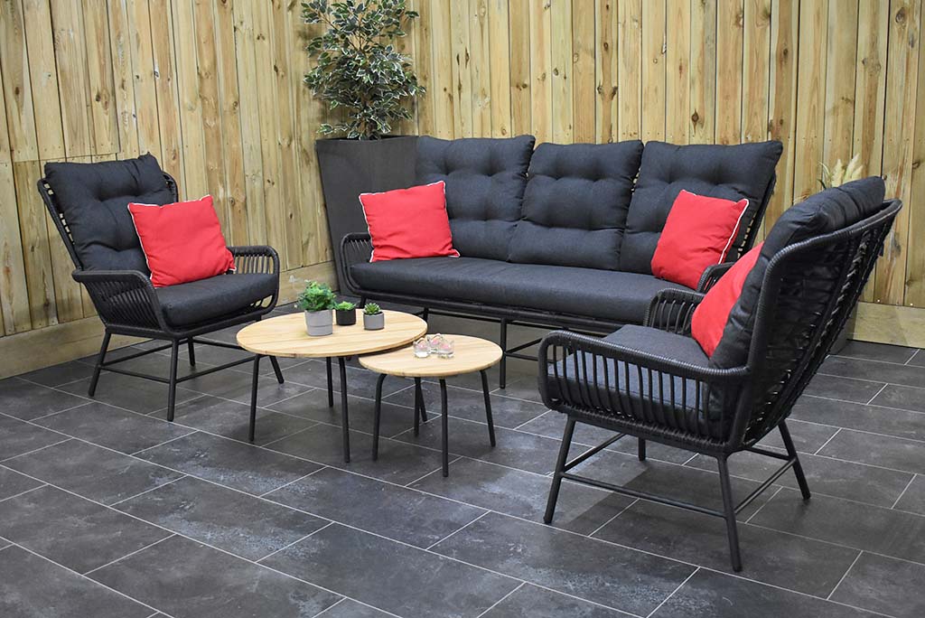 Gartenmöbel Rothwell Lounge 3er mit 2 Lounge Sessel, und 2 Lounge Tisch mit Teak – Tischplatte