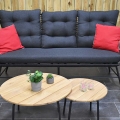 Maße: Lounge Tisch 55 cm rund, 36 cm hoch und 70 cm rund 40 cm hoch