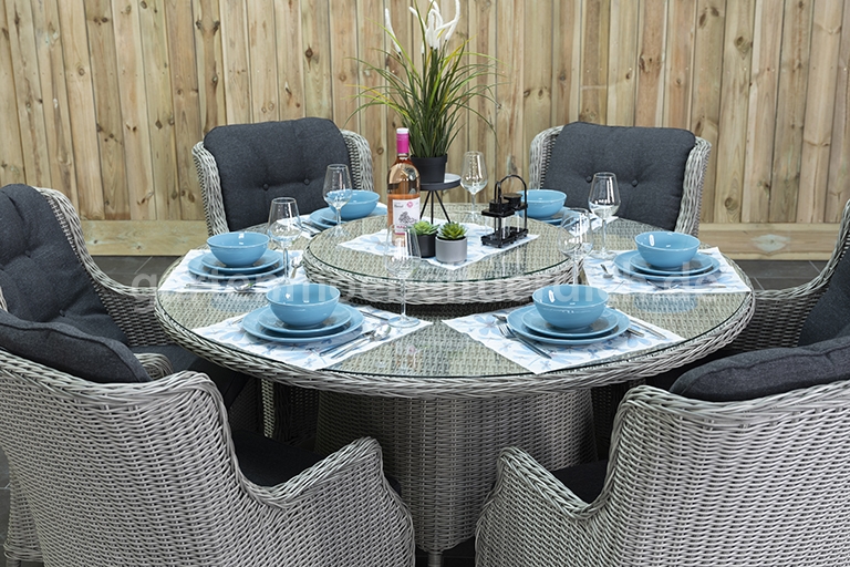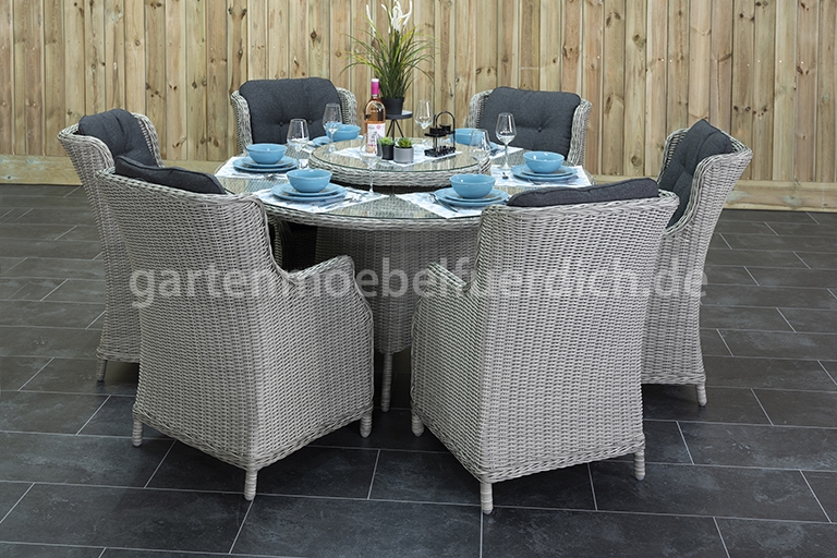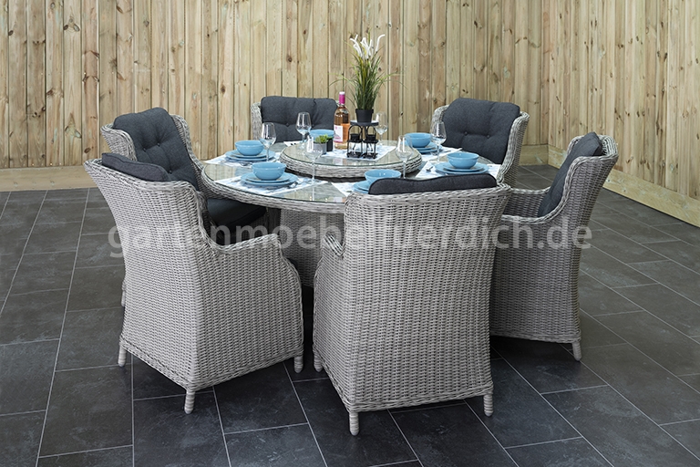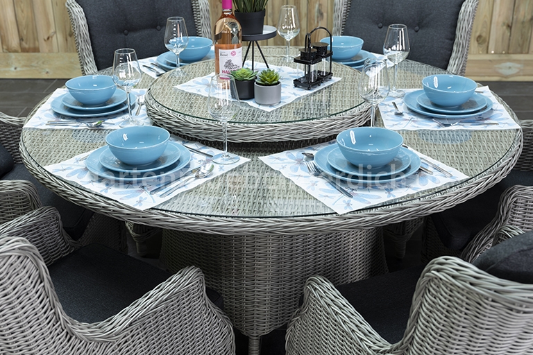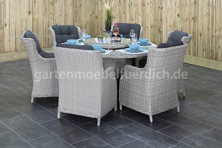 1 x Gerona Polyrattan – Gartentisch mit Glasplatte mit Lazy Susan Drehscheibe