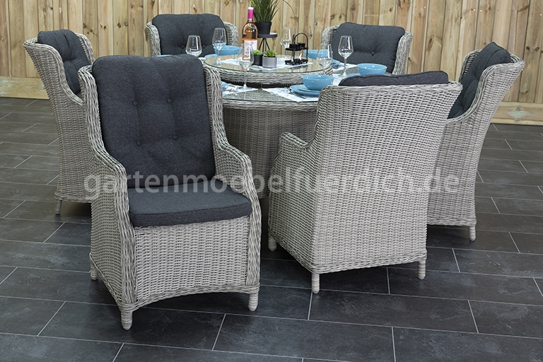 Material: Polyrattan, halbrundes Kunststoffgeflecht, Farbe: hellgrau meliert,