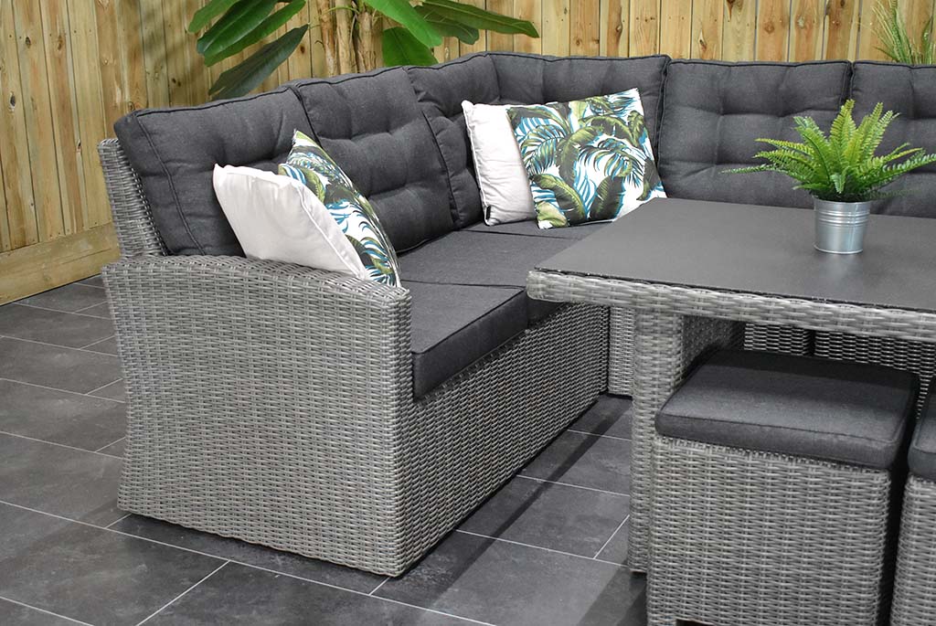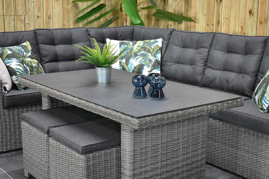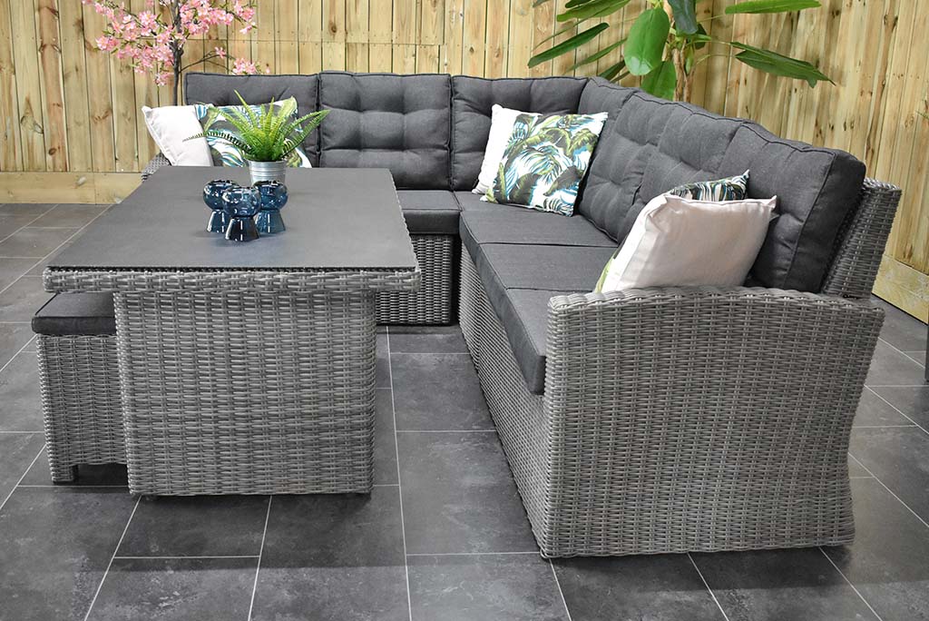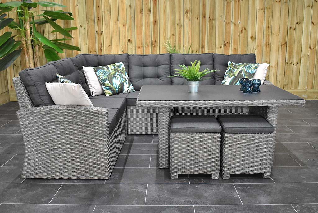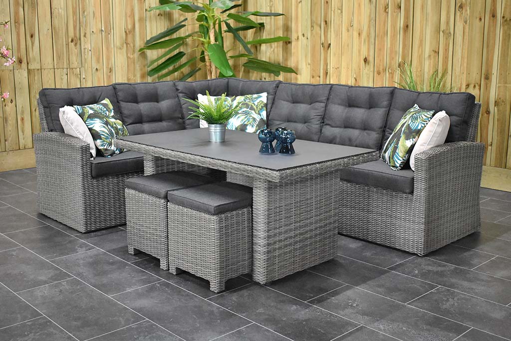 Gartenmöbel Iowa Dining Lounge mit Spraystone Esstisch und Hockern