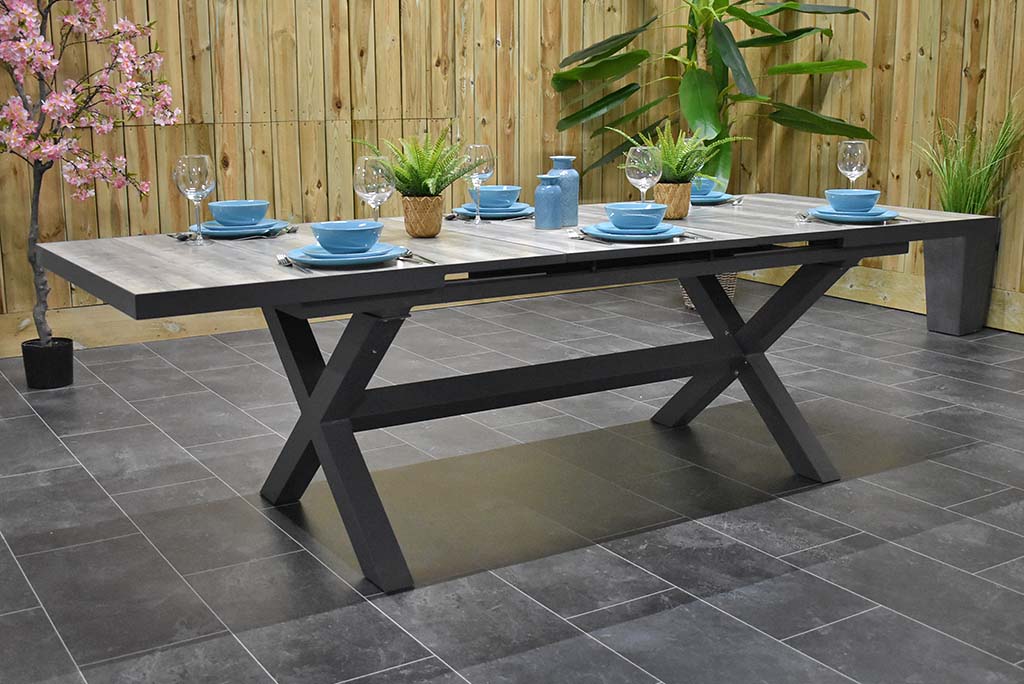 1 x Latium Ausziehtisch Aluminium Gartentisch mit Keramikfliesen – Tischplatte