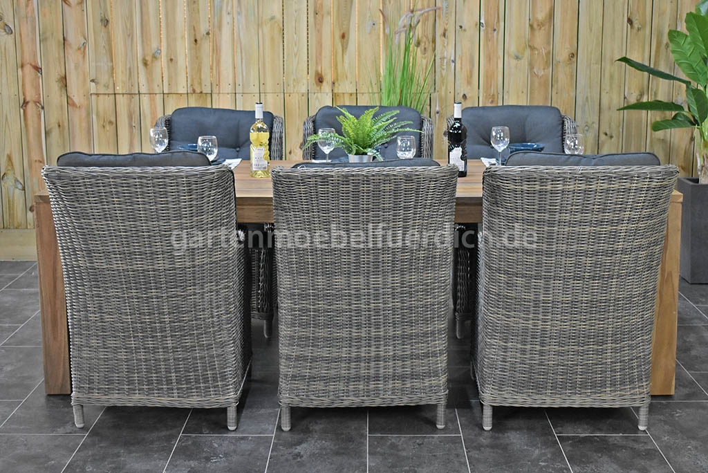 Hinweis: Behandelter Tisch mit Teakholzschild und achten Sie bei dem Gebrauch von Schutzhüllen auf eine ausreichende Luftzirkulation.