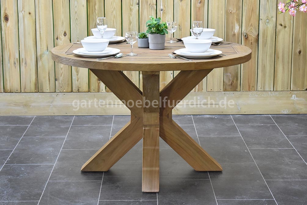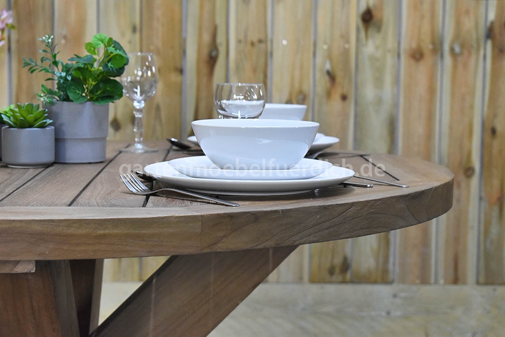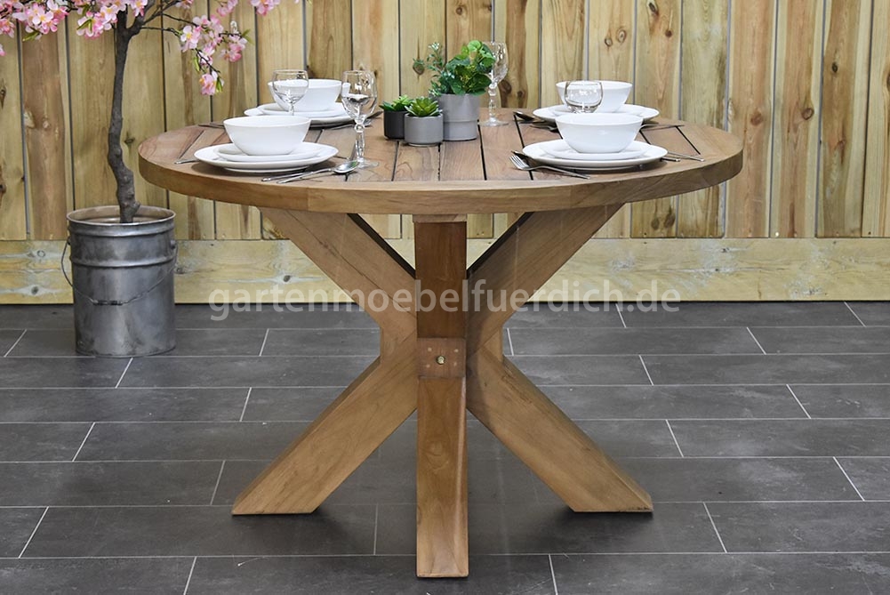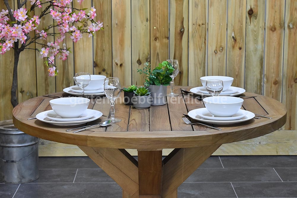1 x Serang Teak-Gartenholztisch 120 cm rund
