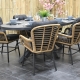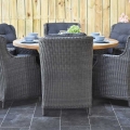 Material: Aluminiumgestell und Polyrattan (Polyethylen), halbrundes und rundes an den Arm- und Rückenlehnen Kunststoffgeflecht, Farbe: steingrau meliert