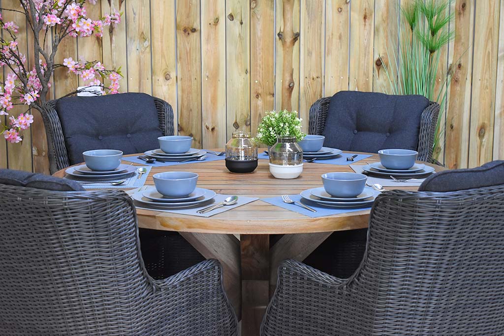 Gartenmöbel Serang runder Teak-Gartenholztisch