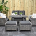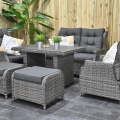 Gartenmöbel Valencia verstellbares Dining Lounge Set, 2er mit Spraystone Esstisch und 2 Hocker