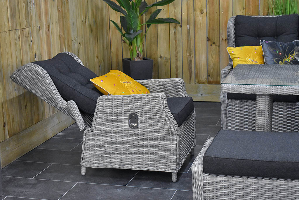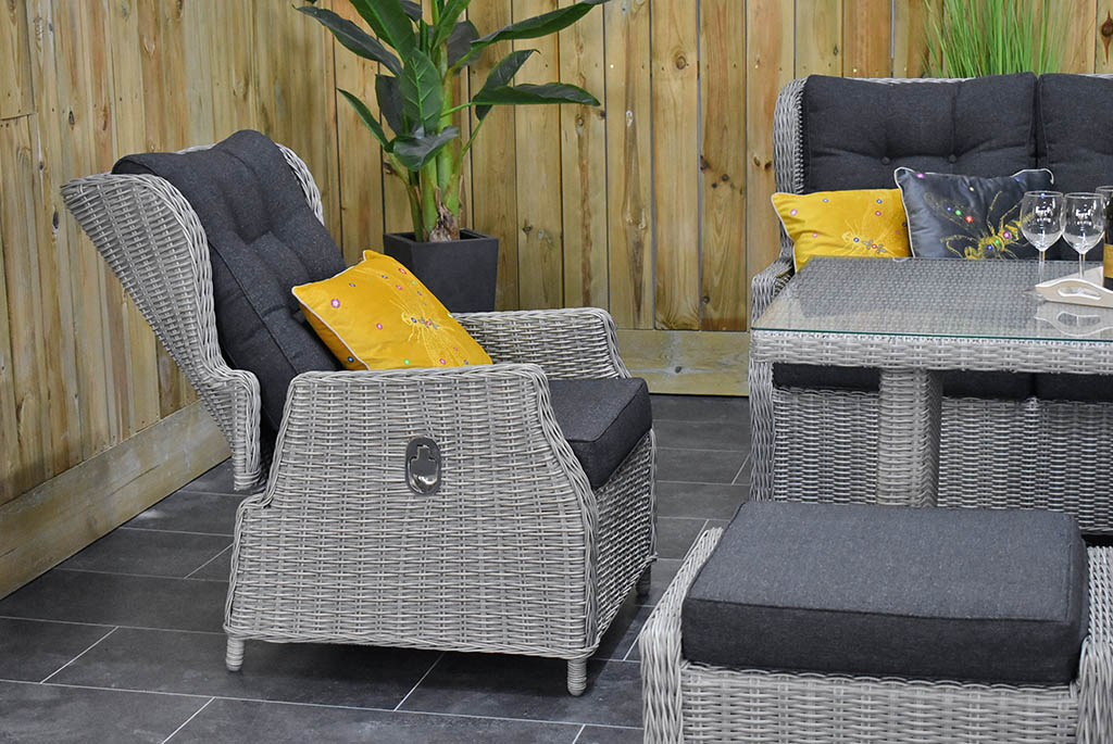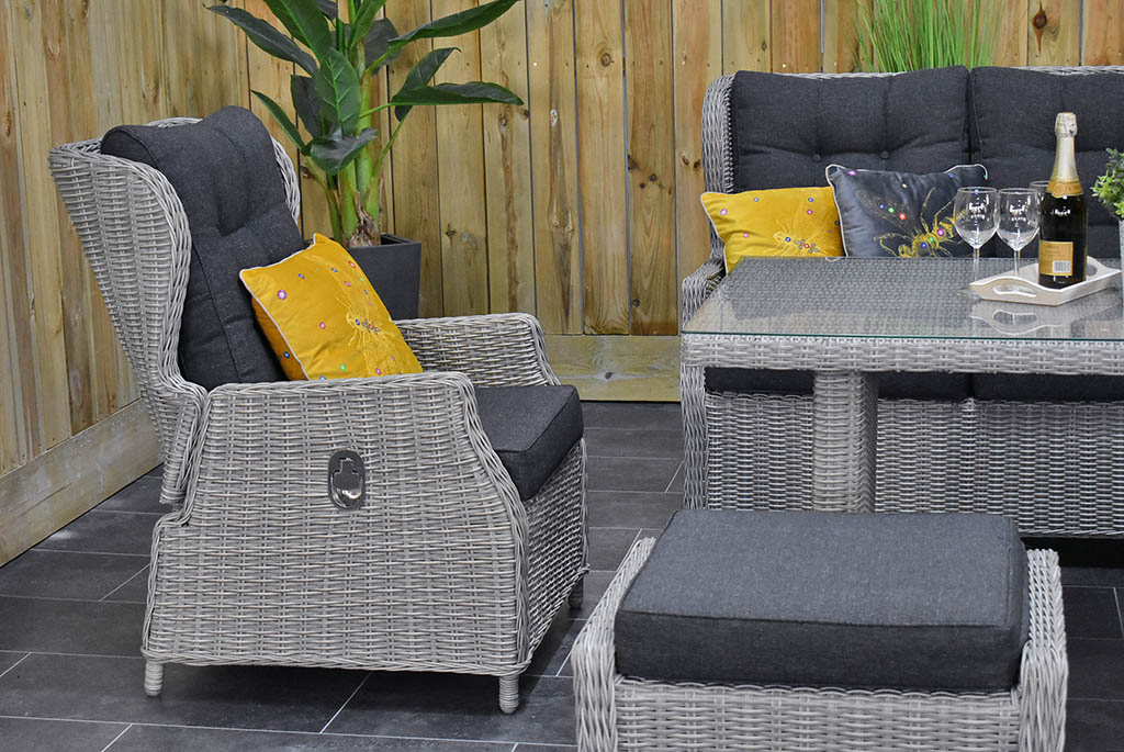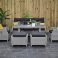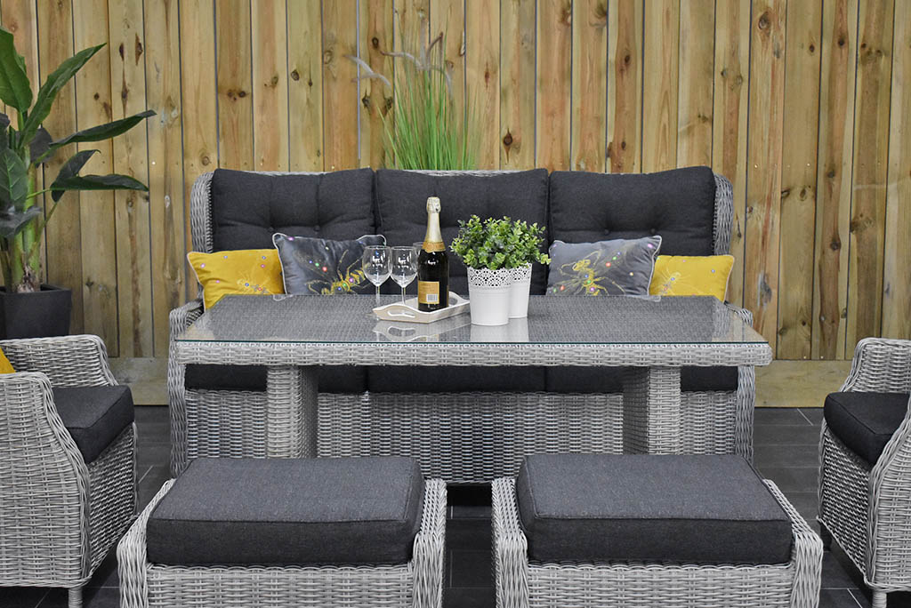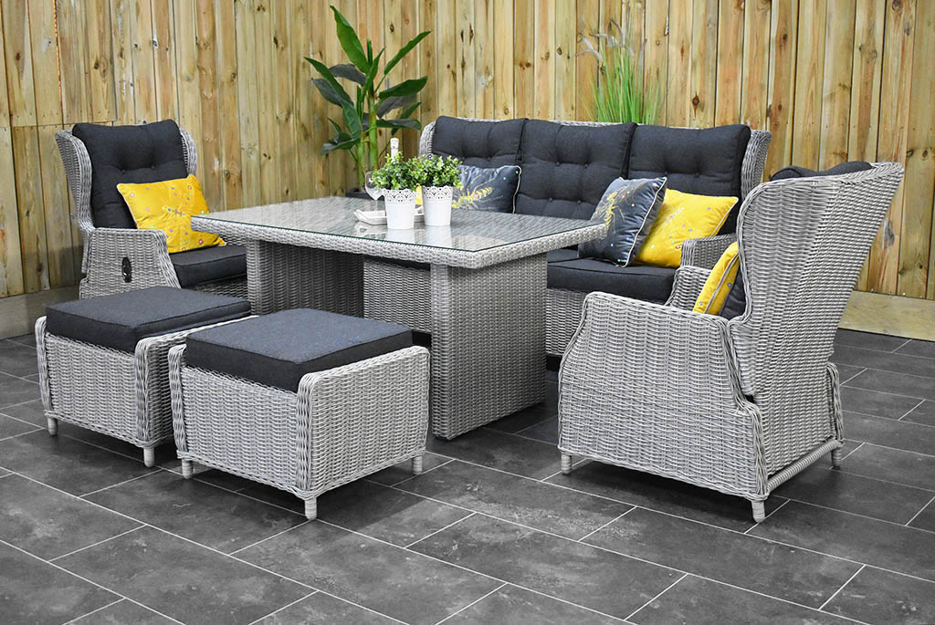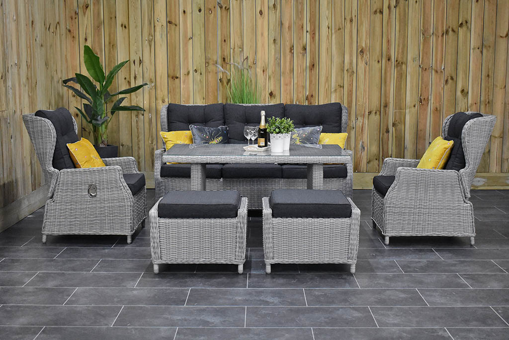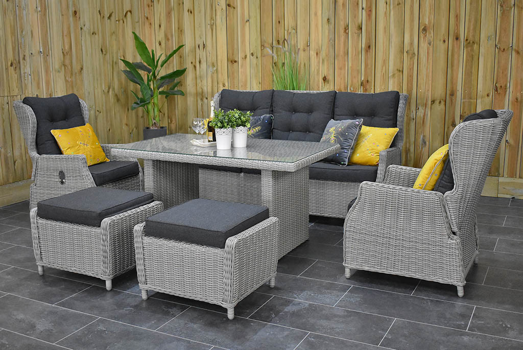 Gartenmöbel Valencia verstellbares Dining Lounge Set, 3er mit Esstisch und 2 Hocker