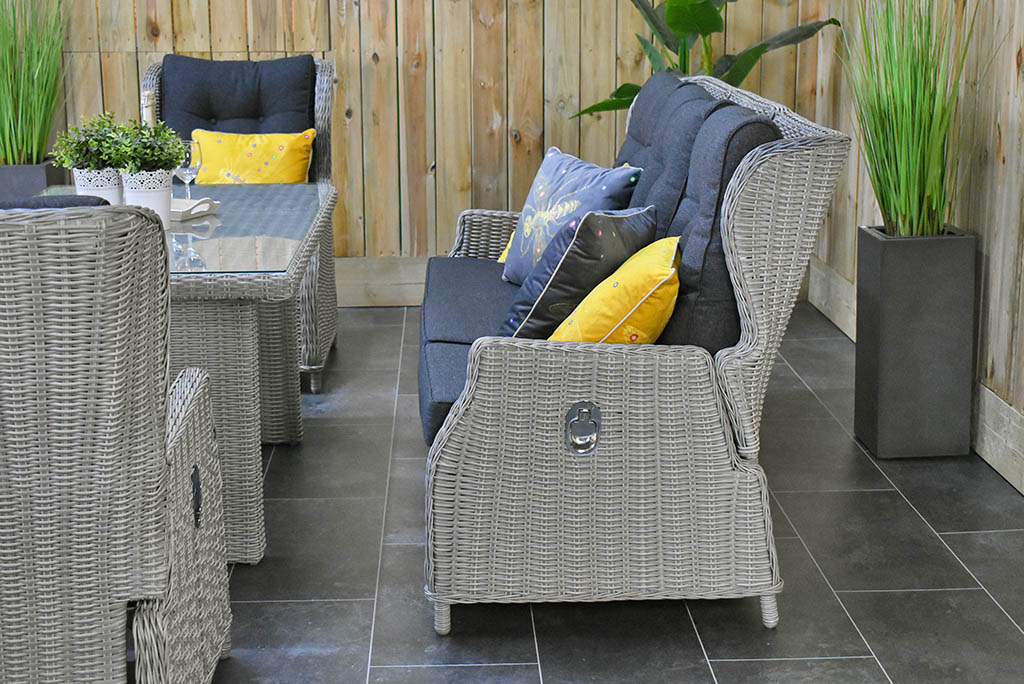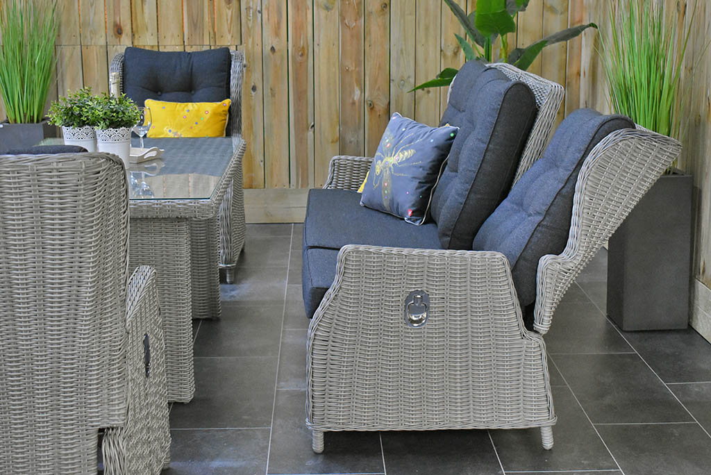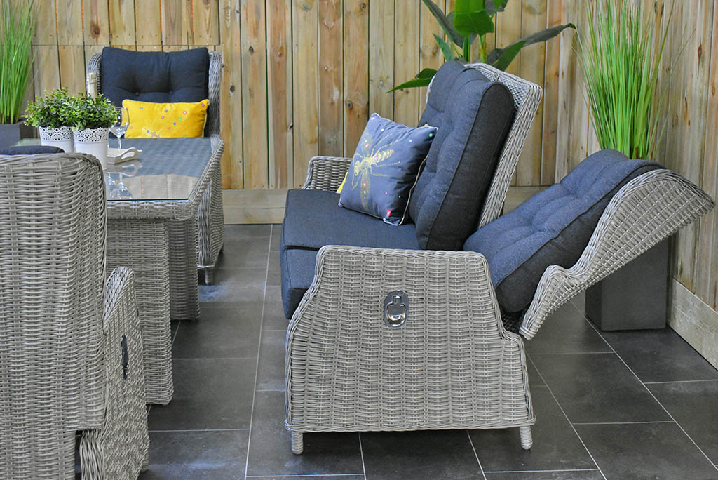 Alu – Untergestell, Stoff, Füllmaterial Polyester, *ESG – Glas, Bewegliche Rückenlehnen mit