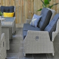 Material: Polyrattan (Polyethylen), halbrundes Kunststoffgeflecht, Farbe: hellgrau meliert