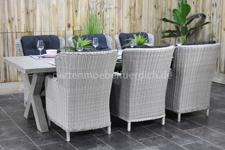 Material: Polyrattan (Polyethylen), halbrundes Kunststoffgeflecht, Farbe: hellgrau meliert,